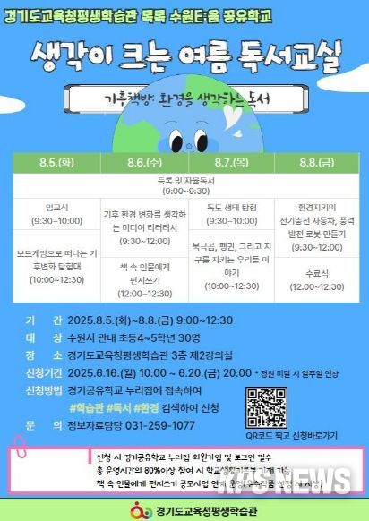 KPSNEWS 김채경 기자 | 경기도교육청평생학습관이 수원 관내 초등학교 4~5학년 학생을 대상으로 ‘생각이 크는 여름 독서교실’공유학교를 운영한다.
