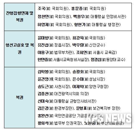 분열과 반목의 정치를 끝내고, 국민대화합 차원에서 이루어지는 이번 광복절 특별사면에는 소상공인, 청년, 운전업 종사자 등 서민생계형 형사범은 물론, 경제인, 여야 정치인, 노동계, 농민 등 2,188명에 대해 폭넓은 특별사면 및 복권을 실시한다.