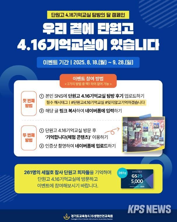 KPSNEWS 김채경 기자 | 경기도교육청4.16생명안전교육원이 ‘단원고 4.16기억교실 탐방의 달’캠페인 이벤트를 진행한다.