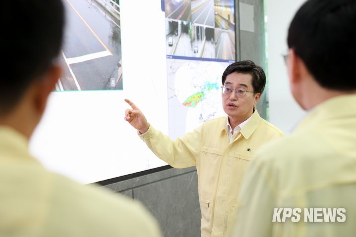 KPSNEWS 김채경 기자 | 13일부터 14일 새벽까지 파주와 동두천 등 경기북부지역을 중심으로 강한 폭우가 집중된 가운데 김동연 경기도지사가 14일 아침 경기도 재난안전대책본부를 찾아 호우 피해 상황을 살펴보고 적극 대처를 당부했다.