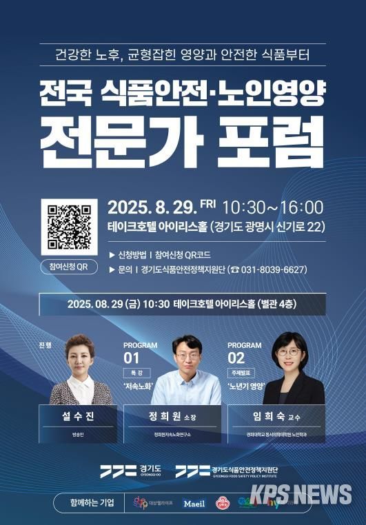 KPSNEWS 김채경 기자 | 경기도가 전국 식품안전 및 노인영양 전문가와 관계자들을 대상으로 오는 29일 광명 테이크호텔에서 ‘전국 식품영양·노인영양 전문가 포럼’을 개최한다.