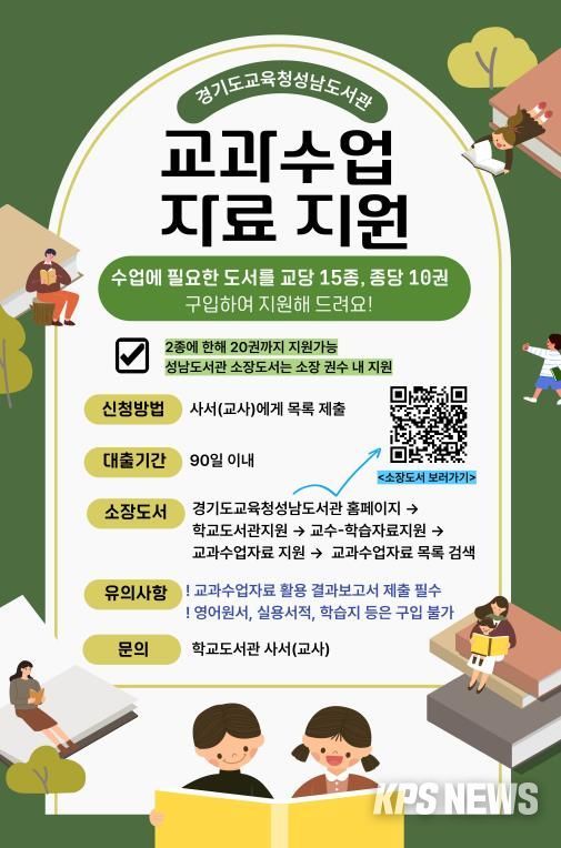 KPSNEWS 김채경 기자 | 경기도교육청성남도서관이 학교도서관 활용수업 활성화를 위해 ‘교과수업자료’를 지원한다.