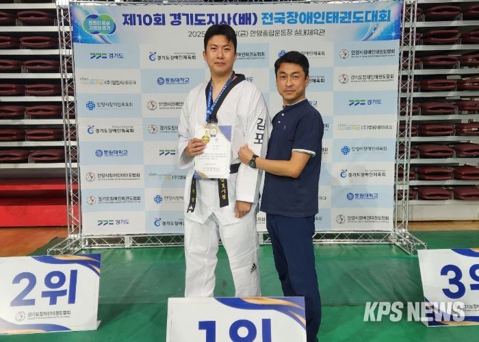 KPSNEWS 김채경 기자 | 김포시는 김포시청 직장운동경기부 태권도팀 소속 이학성 선수가 지난 8월 15일 안양종합운동장 실내체육관에서 열린 2025년도 제10회 경기도지사(배) 전국장애인태권도대회에서 남자 개인 겨루기 종목(+80kg) 1위를 차지하며 금메달을 목에 걸었다고 밝혔다.