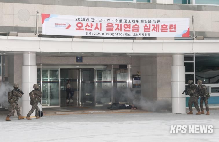 KPSNEWS 김채경 기자 | 오산시는 지난 19일 오후 2시, 시청 앞 광장에서 관·군·경·소방이 함께하는 ‘2025 을지연습 실제훈련’을 실시했다고 밝혔다.