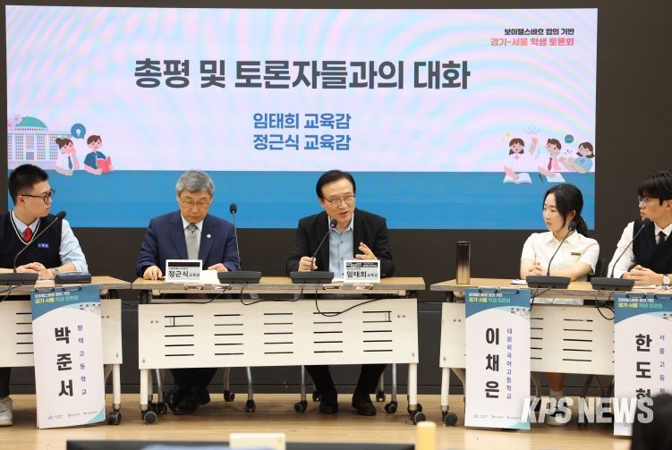 토론회에는 임태희 경기도교육감과 정근식 서울특별시교육감, 국회 교육위원회 김영호 위원장을 비롯해 지역별 중·고등학생 등 모두 100여 명이 참석했다.