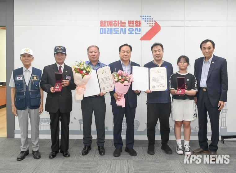 KPSNEWS 김채경 기자 | 오산시는 지난 20일, 6·25전쟁 참전유공자인 고(故) 박재수 하사와 고(故) 이호천 병장의 유가족에게 화랑무공훈장과 훈장증을 전수했다고 밝혔다.