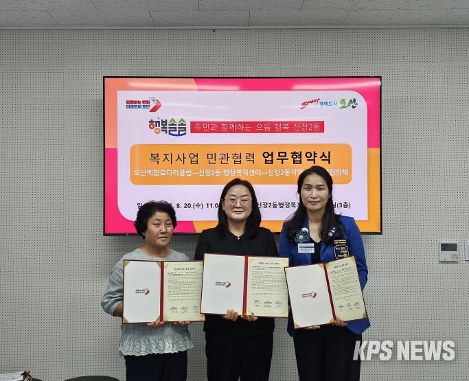 KPSNEWS 김채경 기자 | 오산시 신장2동 행정복지센터와 신장2동지역사회보장협의체는 지난 20일, 오산백합로타리클럽과 함께 지역 복지사각지대 해소를 위한 업무협약을 체결했다고 밝혔다.
