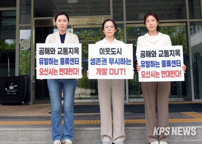 KPSNEWS 김채경 기자 | 오산시의회가 21일 경기도청 북부청사에서 ‘화성 동탄2 유통3부지 물류센터 교통영향평가’ 재심의가 열리는 동안 청사 앞에서 릴레이 1인 시위를 전개했다.