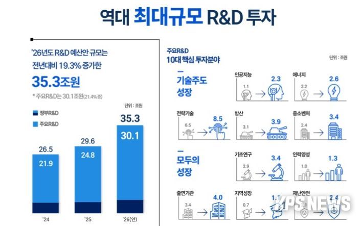 KPSNEWS 김채경 기자 | 이재명 대통령은 22일 "2026년 정부 R&D 예산안은 35조 3000억 원으로, 대한민국 역사상 최대 규모"라고 말했다.
