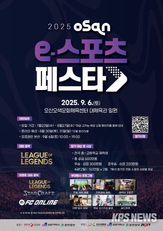 KPSNEWS 김채경 기자 | 오산시는 오는 9월 6일 오산오색문화체육센터에서 ‘2025 오산 e-스포츠 페스타’를 연다.