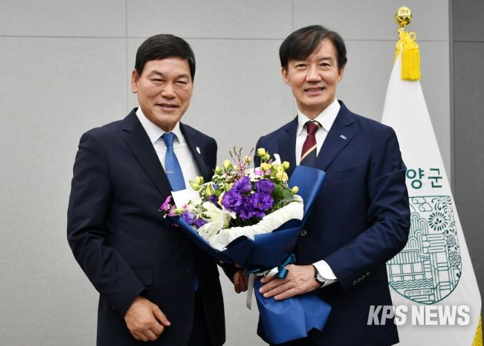 KPSNEWS 김채경 기자 | 정철원 담양군수가 27일 담양군청을 방문한 조국 조국혁신당 혁신정책연구원장과 만나 지역 현안을 논의하고 당 차원의 협력을 요청했다.