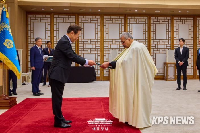 KPSNEWS 김채경 기자 | 이재명 대통령은 오늘 오후 대통령실에서 개최된 신임장 제정식에서 신임 주한 상주대사 7명으로부터 신임장을 제출받았다. 신임장 제정식은 파견국의 국가원수가 자국의 신임 대사에게 수여한 신임장을 주재국 국가원수에게 전달하는 절차로, 이번 제정식은 우리 신정부 출범 이후 처음 개최된 것이다.