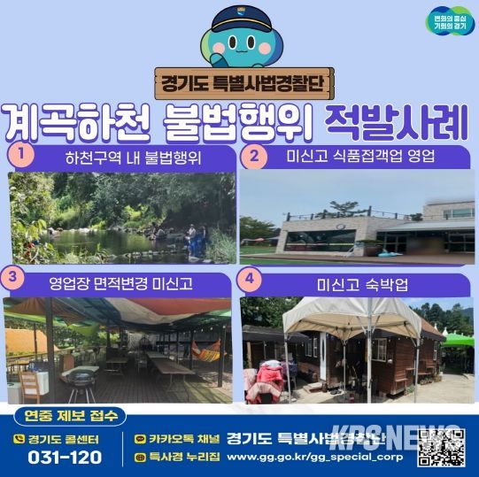 계곡을 사유지처럼 점유하며 불법 영업을 벌이는 행위가 여름 피서철마다 반복되고 있는 가운데, 경기도가 지난 7월 21일부터 8월 20일까지 계곡·하천 휴양지를 집중 수사해 총 12건의 불법행위를 적발했다.