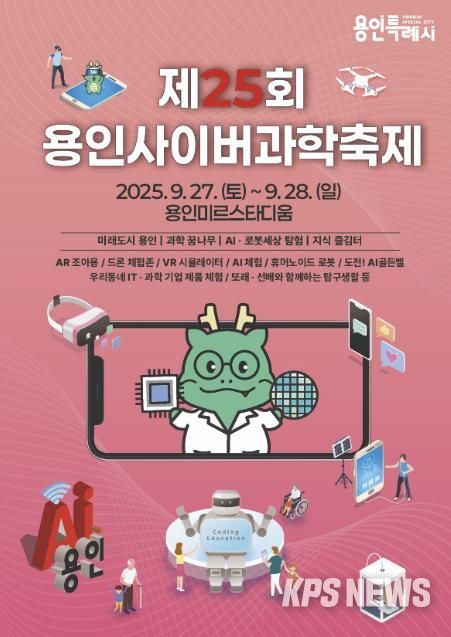 KPSNEWS 김채경 기자 | 용인특례시는 27일부터 28일까지 용인미르스타디움‘에서 열리는 ’제30회 용인시민의 날‘ 행사에서 ’2025 용인사이버과학축제‘를 개최한다고 19일 밝혔다.