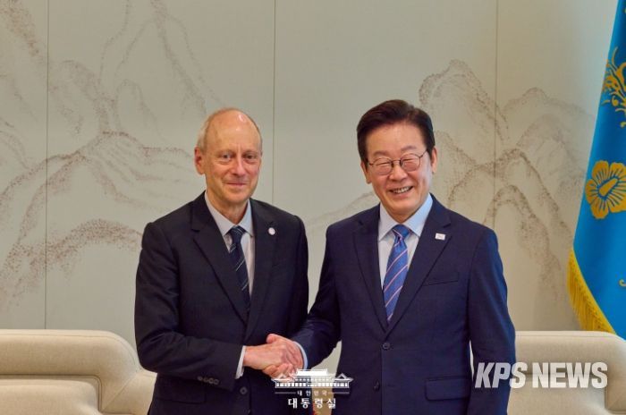 KPSNEWS 김채경 기자 | 이재명 대통령은 오늘 오후 집무실에서 '정의란 무엇인가'의 저자인 마이클 샌델 미국 하버드대 교수를 접견했다.