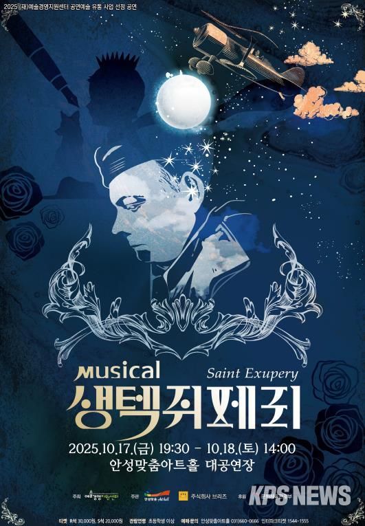 KPSNEWS 김채경 기자 | 오는 10월 17일 저녁 7시 30분과 18일 오후 2시, 안성맞춤아트홀 대공연장에서 뮤지컬 '생텍쥐페리'가 무대에 오른다. 이번 공연은 문화체육관광부와 (재)예술경영지원센터가 주관하는 2025 공연예술 유통 지원사업에 선정되어, 지역 관객에게 수준 높은 창작 뮤지컬을 합리적인 예산으로 선보이게 됐다.
