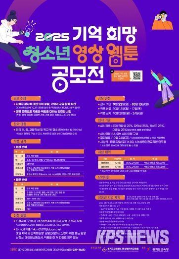 KPSNEWS 김채경 기자 | 경기도교육청4.16생명안전교육원이 ‘2025 기억 희망 청소년 영상‧웹툰 공모전’을 개최한다.