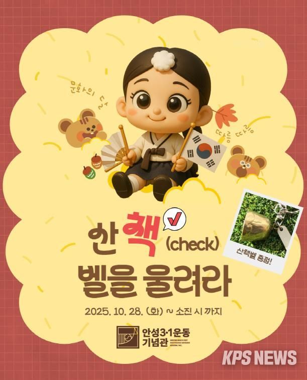 KPSNEWS 김채경 기자 | 안성3.1운동기념관은 10월 문화의 달을 맞이하여 10월 28일(화)부터 특별 체험활동 “산책(Check) 벨을 울려라”를 진행한다.