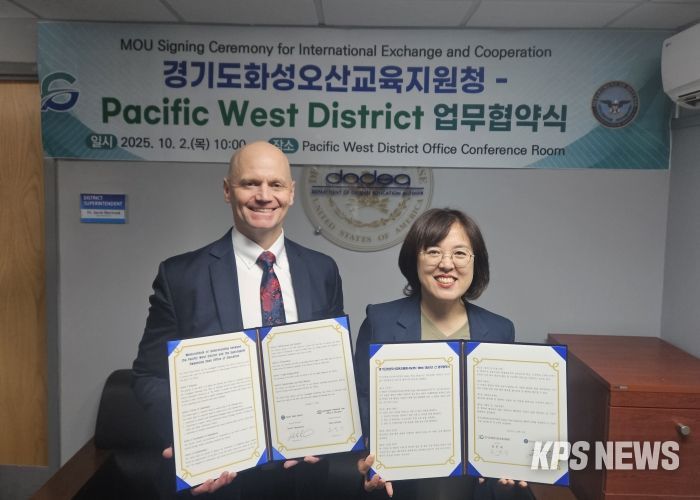KPSNEWS 김채경 기자 | 화성오산교육지원청은 10월 2일 미국방부교육청 대회의실에서 미국 Pacific West District와 국제교류협력 업무협약(MOU)을 맺고, 학생 맞춤형 글로벌 교육 프로그램을 본격적으로 추진한다.