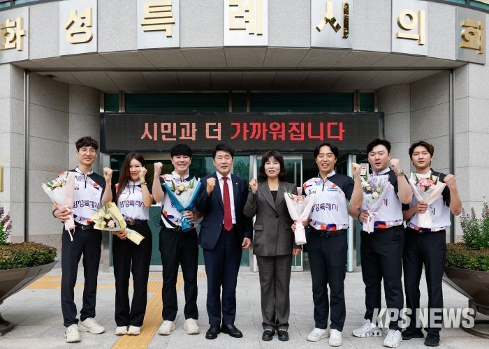 KPSNEWS 김채경 기자 | 화성특례시의회는 2일, 지난 9월 개최된 ‘2025 동트는 동해컵 프로볼링대회’에서 개인전과 단체전을 석권한 팀 MK 글로리아 선수단을 초청해 간담회를 갖고 표창을 수여했다.