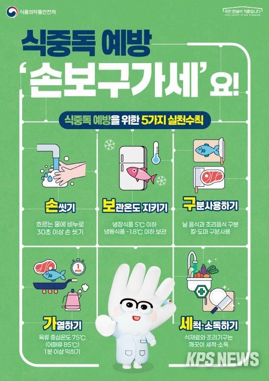 ‘손보구가세’는 ▲흐르는 물에 30초 이상 손 씻기 ▲식재료 보관 온도 지키기 ▲도마·칼 등 도구 구분 사용하기 ▲음식 충분히 가열하기 ▲식재료와 조리도구 세척·소독하기를 의미한다.