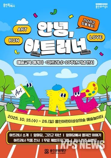 KPSNEWS 김채경 기자 | (재)용인문화재단은 예술교육 매개자 ‘아트러너(Art Runner)’ 사업 10주년을 맞아 오는 10월 15일부터 26일까지 용인어린이상상의숲 예술놀이터에서 기념 전시 '안녕, 아트러너'를 개최한다.