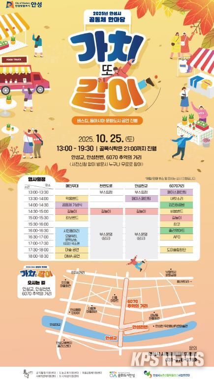 KPSNEWS 김채경 기자 | 안성시는 오는 2025년 10월 25일, 안성시내 일원(안성교~안성천변~안성천~6070 추억의거리)에서 2025 안성시 공동체 한마당 ‘가치 또 같이’ 를 개최한다.