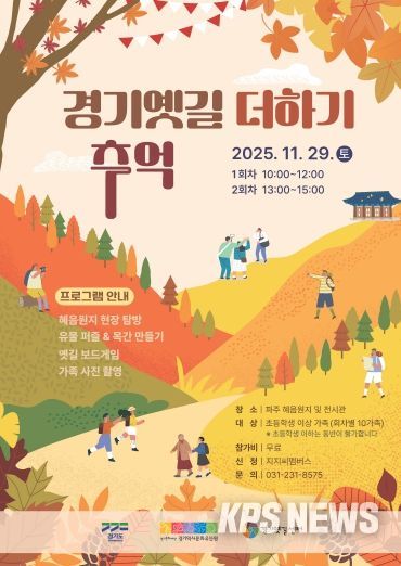 KPSNEWS 김채경 기자 | 경기문화재단 경기역사문화유산원는 오는 11월 29일 토요일, 의주길에 위치한 파주 혜음원지 일대에서 초등학생 이상 자녀를 둔 가족을 대상으로 하는 역사 체험 프로그램 ‘경기옛길 더하기 추억’을 개최한다고 밝혔다.