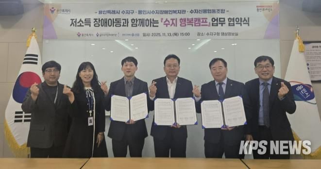 KPSNEWS 김채경 기자 | 용인특례시 수지구는 13일 용인시수지장애인복지관과 수지신용협동조합과 함께 저소득 장애아동의 복지 향상과 장애 인식 개선을 위한 ‘수지 행복캠프’ 추진 업무협약을 체결했다고 14일 밝혔다.