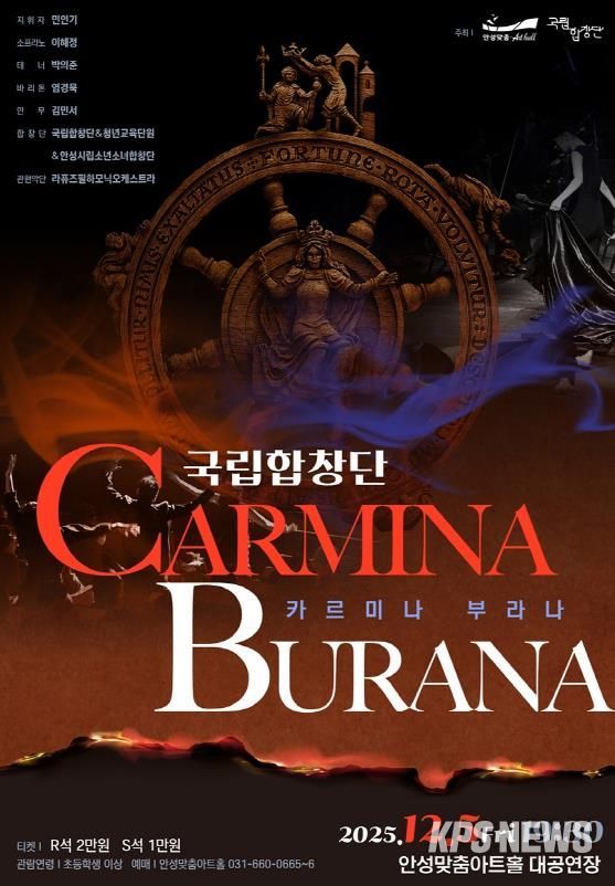KPSNEWS 김채경 기자 | 안성맞춤아트홀은 오는 12월 5일 오후 7시 30분, 대공연장에서 국립합창단이 선보이는 칼 오르프의 칸타타〈카르미나 부라나'를 공연한다. 이번 무대는 약 200명의 출연진이 참여하는 대규모 무대로, 안성 시민에게 웅장한 음악적 감동을 선사할 예정이다.
