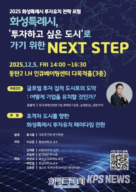 KPSNEWS 김채경 기자 | 화성특례시가 ‘2025 화성특례시 투자유치 전략 포럼’을 다음 달 5일 동탄2 인큐베이팅센터 다목적홀에서 개최한다.