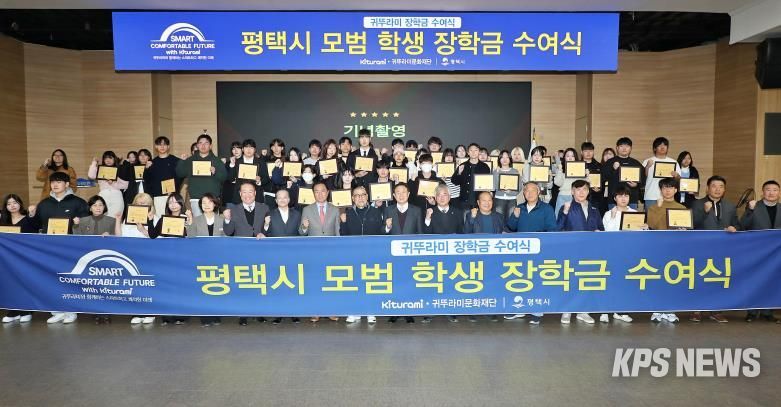 KPSNEWS 김채경 기자 | 평택시는 지난 18일 평택시청 대회의실에서 정장선 시장을 비롯해 최진민 귀뚜라미그룹 회장, 귀뚜라미재단 관계자, 평택시 관내 대학 총장, 평택시 장학재단 이사장, 장학생 등이 참석한 가운데 녩평택시-귀뚜라미 장학증서 수여식’을 개최하고 지역 대학생 50명에게 총 5천만 원의 장학금을 전달했다.
