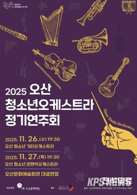 KPSNEWS 김채경 기자 | 오산문화재단이 주최하고 오산시가 후원하는 ‘2025 오산 청소년 오케스트라 정기연주회’가 오는 11월 26일부터 27일까지 오산문화예술회관 대공연장에서 이틀간 개최된다. 공연은 전석 무료로 시민 누구나 관람할 수 있다.