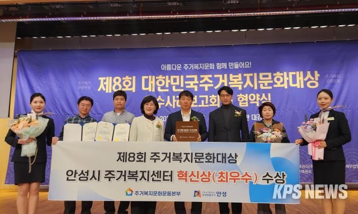 KPSNEWS 김채경 기자 | 안성시 주거복지센터는 지난 20일 국회도서관 대강당에서 열린 제8회 대한민국 주거복지문화대상 시상식에서 주거복지 분야 발전에 공헌한 성과를 인정받아 혁신상(최우수상) 수상 및 문화체육관광위원장 표창을 받았다고 밝혔다.