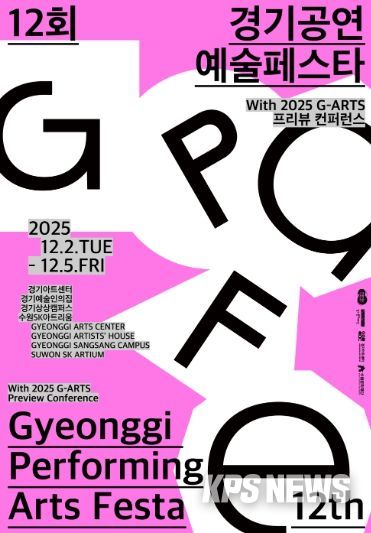 KPSNEWS 김채경 기자 | 경기문화재단은 경기도 수원 일대에서 제12회 경기공연예술페스타를 개최한다. 페스타는 2025년 12월 2일부터 5일까지 경기 예술인의 집, 경기아트센터, 경기상상캠퍼스, 수원SK아트리움 등에서 진행되며, 베스트콜렉션, 쇼케이스 데이, 공동 창·제작 쇼케이스, 피치세션, 토크세션, 워크숍 등 다양한 프로그램을 통해 경기 공연예술 생태계의 흐름과 성과를 한눈에 보여줄 예정이다. 또한 경기아트센터 주최 ‘2025 G-ARTS 프리뷰 컨퍼런스’가 동시 개최되며, 보다 풍성한 전문 교류의 장을 마련한다.