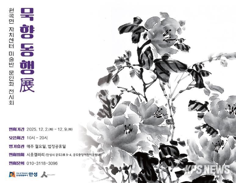 KPSNEWS 김채경 기자 | 안성시 공도 작은미술관 시옷갤러리에서는 오는 12월 2일부터 12월 9일까지 원곡면 자치센터 미술반의 문인화 전시회 ‘묵향동행展’을 개최한다.