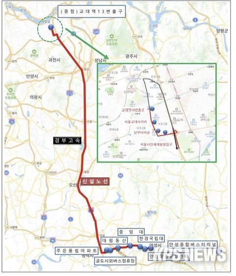 신설 광역버스는 안성종합버스터미널을 기점으로 안성맞춤공감센터, 한경국립대학교, 중앙대·롯데캐슬아파트, 대림동산, 공도시외버스정류장, 주은·풍림아파트를 거쳐 서울시인재개발원 입구, 남부터미널, 서울교대사거리, 교대역을 운행하는 노선으로, 차량 6대로 일 24회 운행하며 배차간격은 30~50분이다.