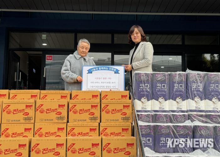 KPSNEWS 김채경 기자 | (재)이재운장학회의 현영숙 이사는 지난 24일 평택시 안중읍을 방문해 지역의 어려운 이웃을 돕는데 사용해 달라며, 라면과 휴지(200만 원 상당)를 안중읍 행정복지센터에 전달했다.