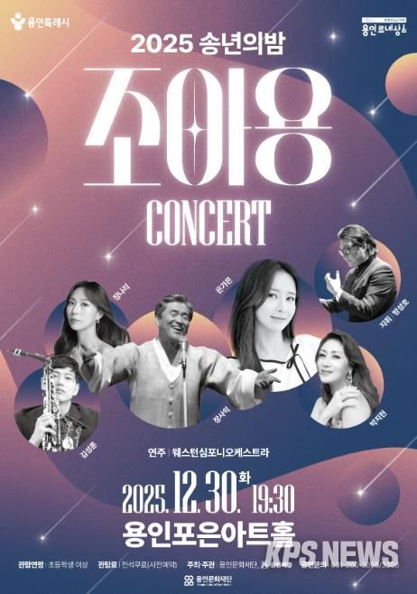 KPSNEWS 김채경 기자 | 용인문화재단은 오는 12월 30일 용인포은아트홀에서 지역예술인과 함께하는 ‘2025년 송년의 밤 - 조아용 콘서트‘를 용인예총(한국예총 용인지회)과 공동 개최한다.
