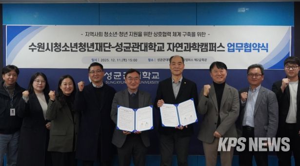 KPSNEWS 김채경 기자 | 수원시청소년청년재단은 11일 성균관대학교 자연과학캠퍼스와 청소년ㆍ청년의 취‧창업 지원과 전인적 성장을 위한 업무협약(MOU)을 체결했다고 밝혔다.