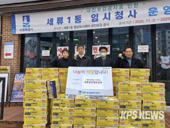 이번 나눔은 겨울철 경제적 어려움을 겪고 있는 취약계층 이웃들에게 작은 힘이 되고자 마련됐으며, 기탁된 라면은 세류1동 내 취약계층 및 도움이 필요한 가구에 전달될 예정이다.