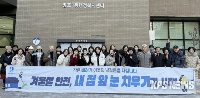 KPSNEWS 김채경 기자 | 수원시 영통구 망포1동 행정복지센터는 지난 12월 19일 통장, 공무원 등 40여 명이 참여한‘내 집 앞 눈 쓸기 캠페인’을 실시했다.