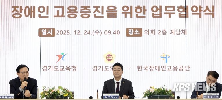 KPSNEWS 김채경 기자 | 경기도교육청이 24일 경기도의회 예담채에서 경기도의회(의장 김진경), 한국장애인고용공단(이사장 이종성)과 함께 장애인 고용증진을 위한 업무협약을 체결했다.