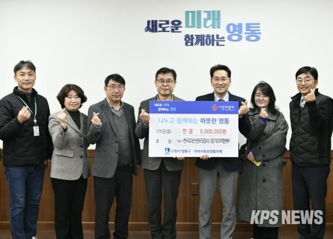 KPSNEWS 김채경 기자 | 수원시 영통구는 지난 24일 한국자산관리공사 경기지역본부에서 관내 경제적으로 어려움을 겪는 이웃을 위해 성금 500만 원을 기부했다고 밝혔다.