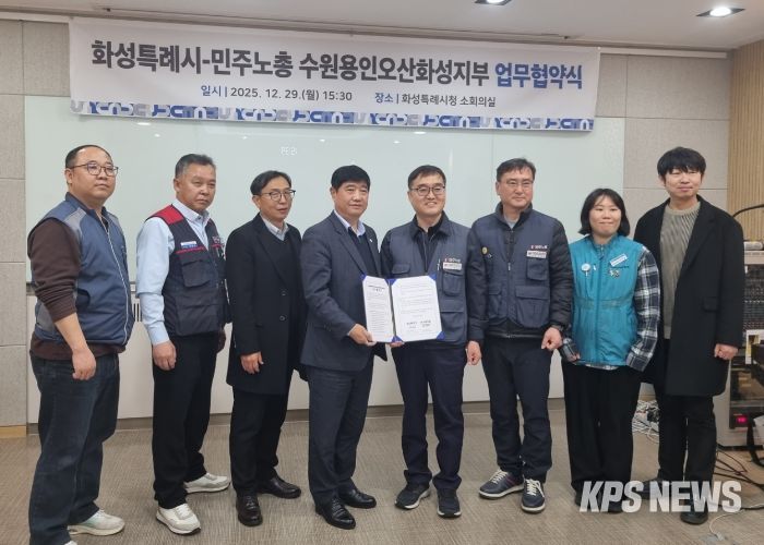 KPSNEWS 김채경 기자 | 화성특례시가 지난 29일 민주노총 경기지역본부 수원용인오산화성지부와 ‘노정 협력을 위한 업무협약(MOU)’을 체결했다.