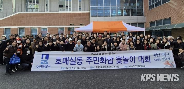 KPSNEWS 김채경 기자 | 수원시 권선구 호매실동은 단체장협의회 주관으로 지난 21일 행정복지센터 주차장에서 정월대보름을 맞아 마을의 풍요와 안녕을 기원하는 ‘2026년 호매실동 주민화합 윷놀이 대회’를 성황리에 개최했다.