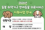 KPSNEWS 김채경 기자 | 수원특례시는 돌봄 취약가구의 반려동물 양육 부담을 덜고 동물복지를 강화하기 위해 ‘2026년 돌봄 취약가구 반려동물 의료서비스 지원사업’을 추진한다. 지원 대상은 수원시에 주민등록을 두고 실제 거주하며 본인 명의로 반려동물을 등록해 기르는 기준중위소득 85% 이하 가구다. 저소득층, 중증장애인, 한부모가정, 다문화가정, 1인가구 등이 포함된다. 경기도 공공입양기관에서 국가봉사동물을 입양한 경우는 소득과 관계없이 지원한다. 보호자 1명당 2마리까지 신청할 수 있다. 동일 동물은 ‘의료·돌봄·장례 지원’ 또는 ‘노령동물 종합건강검진’ 중 한 가지 항목만 선택해 지원한다. 의료·돌봄·장례 지원은 마리당 최대 16만 원(초과비용 자부담), 노령동물 종합건강검진은 최대 32만 원(초과비용 자부담)까지 지원한다. 노령동물 검진은 2019년 12월 31일 이전 출생한 반려동물에 한한다. 의료지원에는 백신접종, 중성화수술, 기본검진·치료비 등이 포함되고, 돌봄 위탁비와 장묘 서비스도 지원한다. 노령 반려동물은 종합건강검진을 받을 수 있으며 모든 서비스는 관내 업체를 이용해야 한다.