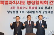KPSNEWS 김채경 기자 | 전북특별자치도를 비롯한 4개 특별자치시·도가 8일 긴급 회동을 갖고 '3특·행정수도 특별법' 조속 통과를 촉구하며 한목소리를 냈다. 김관영 전북도지사, 김진태 강원도지사, 최민호 세종시장, 고용균 제주 부지사는 이날 콘래드서울호텔에서 대한민국특별자치시도 행정협의회 간담회를 열고 향후 공동 대응방안을 논의했다. 이번 긴급 회동은 최근 국회에서 '행정통합 특별법' 논의가 급물살을 타면서 먼저 출발한 특별자치시·도 법안 심사가 지연되고, 정책적으로 소외될 수 있다는 우려가 커지면서 성사됐다. 김관영 전북도지사는 "광역행정통합 논의가 급물살을 타면서 자칫 먼저 출발한 특별자치시·도들이 우선순위에서 밀려나는 것 아니냐는 우려가 크다"며 "대한민국 균형발전은 거대 경제권인 '5극'만으로는 완성될 수 없다"고 강조했다. 이어 "아무리 강력한 엔진(5극)이 힘을 내뿜어도, 그 에너지를 국토 구석구석 전달하며 마찰을 줄여주는 밸런서(특별자치시도)가 제 기능을 못 하면 대한민국이라는 배는 한쪽으로 기울어 멈춘다"며 "모든 지역은 선후, 경중의 문제가 아니라 서로의 성공을 견인하는 동등하고 유기적인