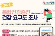 KPSNEWS 김채경 기자 | 평택시 송탄보건소는 2026년 통합건강증진사업 계획수립을 위해 지역주민을 대상으로 건강요구도 설문조사를 진행한다고 밝혔다. 이번 조사는 지역사회 주민들의 만성질환 관리, 신체활동, 비만 예방관리 등 건강 관련 요구를 파악하여, 2026년 지역사회 통합건강증진사업 계획수립에 반영하기 위해 마련됐다. 설문 내용은 △보건소 건강증진사업에 대한 참여 경험 및 인식도 △건강증진을 위해 가장 필요하다고 생각하는 우선 사업 △생애주기별 보건사업 대상 우선순위 등 총 10개 문항으로 구성됐으며, 설문 결과는 2026년 통합건강증진사업의 세부 사업 발굴과 우선순위 설정을 위한 기초자료로 활용될 예정이다. 설문조사는 평택시와 보건소 누리집과 송탄보건소 카카오톡 채널(송탄보건소 건강정보톡!) 등에 게시된 정보무늬(QR코드)를 통해 온라인으로 진행되며, 설문조사에 참여한 주민을 대상으로 추첨을 통해 모바일 상품권을 제공할 예정이다. 송탄보건소 조민수 소장은 “이번 건강요구도 조사는 주민의 목소리를 직접 듣고 지역에 맞는 건강증진사업을 추진하기 위한 중요한 과정”이라며 “시민들의 적극적인 참