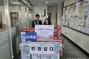 KPSNEWS 김채경 기자 | 지난 26일, 당수동 소재 ‘민화담다’는 입북동 행정복지센터를 방문해 라면 20박스, 휴지 10개를 전달했다. 이번에 기탁한 물품은 ‘민화담다’ 직원들이 어려운 이웃을 생각하며 기부금을 모아 마련했으며, 입북동 지역사회보장협의체를 통해 복지사각지대, 장애인, 한부모가정, 독거어르신 등에 전달될 예정이다. 이경영 입북동장은 “아름다운 나눔으로 우리 사회가 좀 더 따뜻해지고 있다.”며 “기탁해 주신 물품은 어려운 이웃들을 위해 잘 전달하겠다.”라고 말했다. 한편 입북동행정복지센터는 복지사각지대를 발굴하여 긴급 지원 및 사례관리 대상자 연계 등 지역사회에 소외된 이웃에 대한 관심으로 다양한 활동을 펼쳐 나가고 있다.